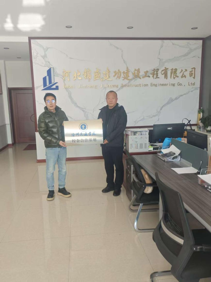 为落实党中央、国务院关于高校毕业生就业工作的决策部署,切实做好我院访企拓岗促就业专项行动,深化校企合作。2025年11月28日,工程管理教研室主任刘红杰和专业教师杨祺增一行,到黄骅市河北锦盛建功建设工程有限公司走访调研,并签署校企合作协议,为工程管理专业学生开辟了新的就业渠道。